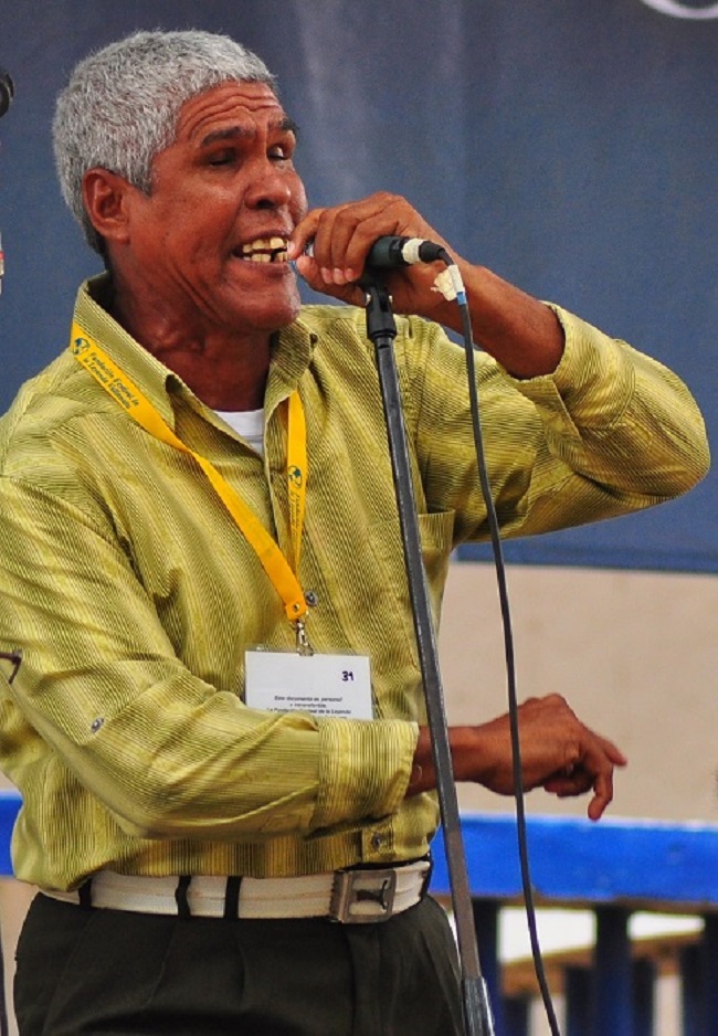 Toco los pitos bonito, toco los bajos sabroso, soy el gallo peligroso, con la espuela y con el pico”.