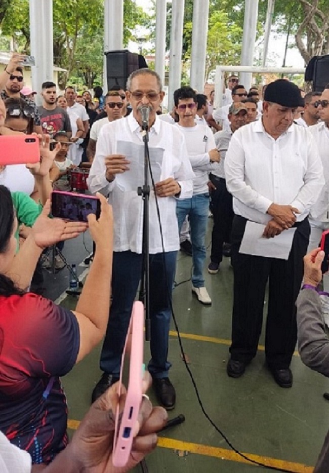 El profesor Fermín Acosta, en nombre del sector musical del Puerto Petrolero finalizó las intervenciones contando las gestas de Víctor Reyes, donde fue catalogado uno de los grandes acordeoneros de la música vallenata.