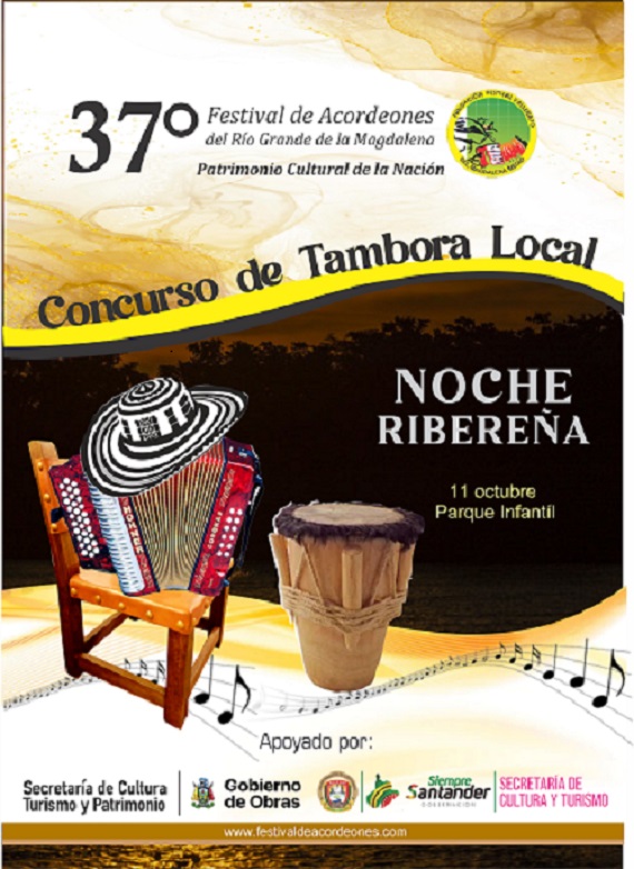 La Fundación Festival Vallenato del Magdalena Medio, presenta el listado de los grupos folclóricos de tamboras, radicadas en la ciudad de Barrancabermeja, que se inscribieron para participar en la noche ribereña a realizarse el 11 del presente mes, la cual entregará premios en efectivo más trofeos a los tres primeros lugares, dentro de las actividades del 37 Festival de Acordeones del Río Grande de la Magdalena; de la siguiente manera: