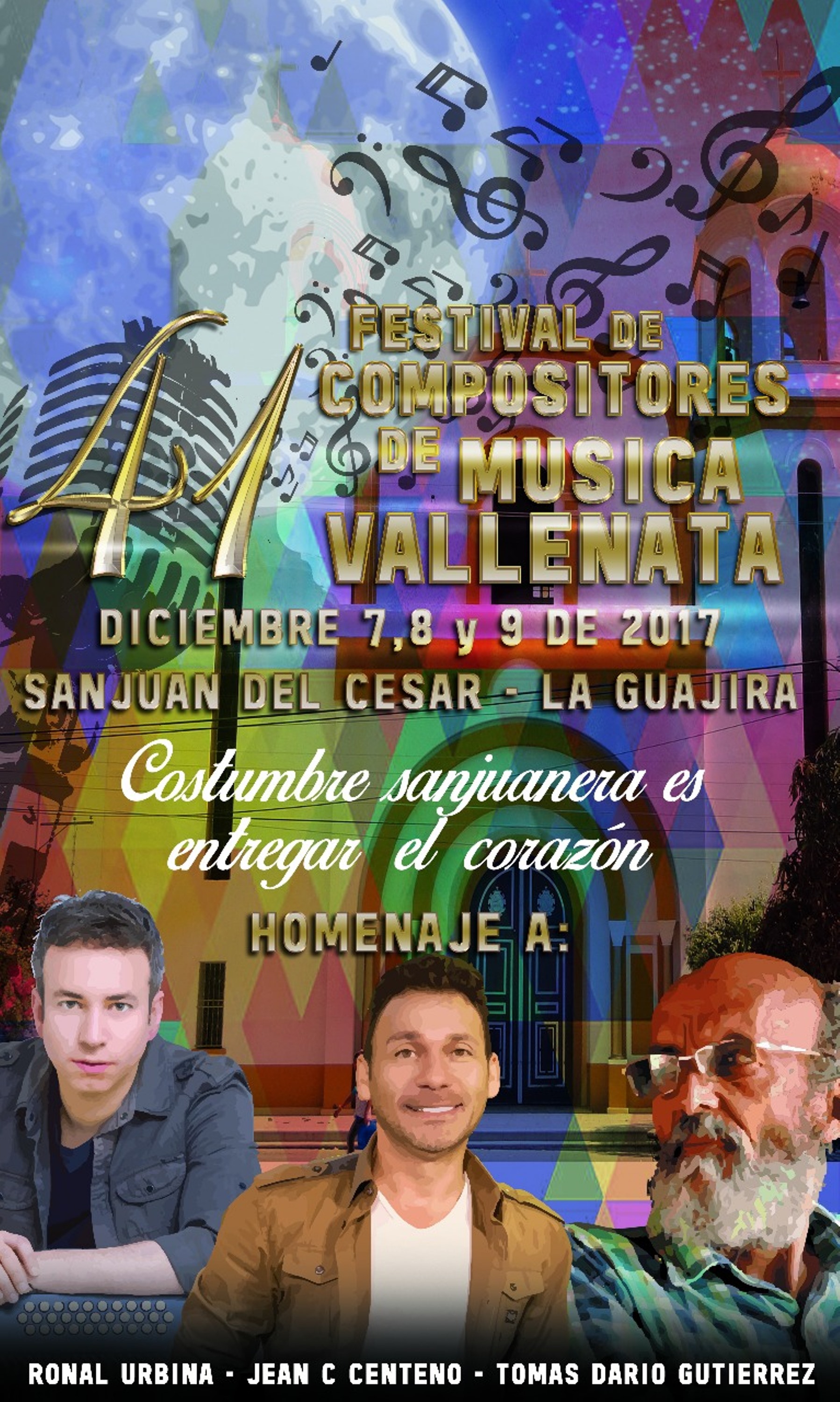 Hasta el seis de diciembre estarán abiertas las inscripciones para los distintos concursos del 41° Festival Nacional de Compositores de Música Vallenata de San Juan del Cesar, La Guajira, que será en homenaje del compositor, escritor e investigador Tomás Darío Gutiérrez y de los artistas Jean Carlos Centeno y Ronald Urbina. Este evento tendrá lugar durante los días 7, 8 y 9 de diciembre.